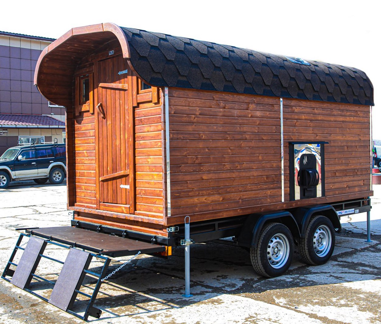 Стремление зарабатывать деньги порождает совершенно неожиданные проекты. Одним из таких можно считать - мобильную баню на прицепе или в народе ее называют "баней на колесах".