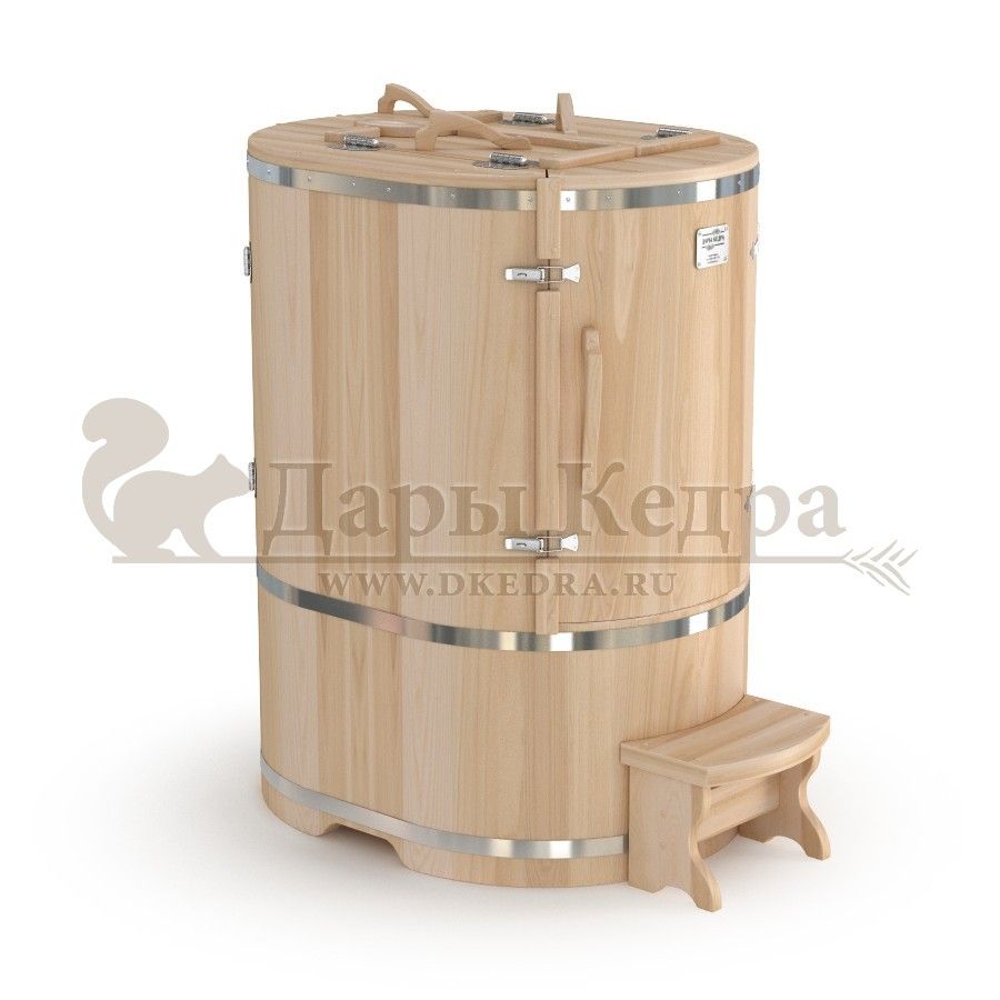 Кедровая бочка (фитобочка) овальная со встроенным парогенератором «Профессиональная» Овальная форма этой кедровой бочки позволяет комфортно разместится даже высоким людям. Встроенный парогенератор исключает дополнительный монтаж. Ширина 78 мм позволяет занести бочку в помещение со стандартным проёмом в собранном виде. Толщина стенок 45 мм позволяет увеличить срок службы изделия. Подходит для коммерческого использования.